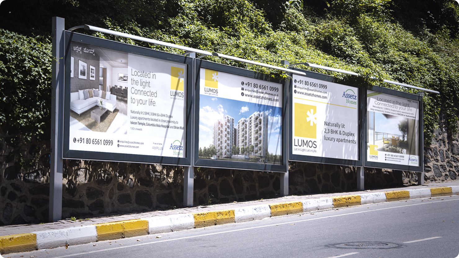 Moralbrat's creative team developed a strategic approach that leveraged the power of storytelling. We went beyond simply showcasing amenities to paint a picture of the lifestyle aspirations each project fulfilled. For instance, vibrant illustrations in brochures depicted families enjoying serene moments in their Assetz Clover Greens residences, while modern billboard designs highlighted the urban convenience offered by Assetz Stratos.